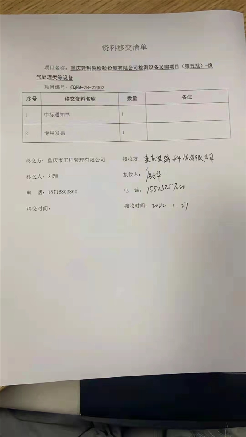 附:中標(biāo)通知書掃描件和移交清單復(fù)印件